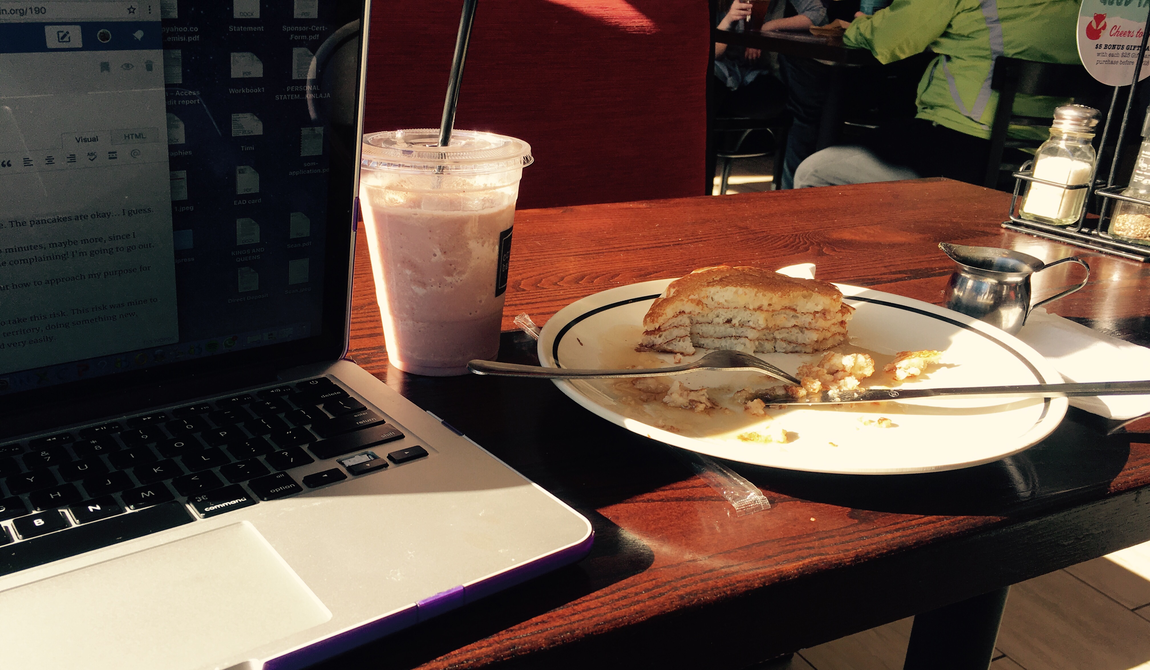 Breakfast at a place I’ve never been before. The pancakes are okay… I guess.